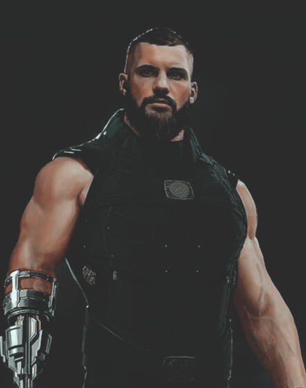 HEIGHT & WEIGHT 6’8” (2.03 m) ; 275 lbs ( 124.74 kg)HAIR Brown, kept short with a fade on the sides with a beard.EYES GreenPIERCINGS NoneSCARS / TATTOOS / MARKINGS NoneDISTINGUISHING FEATURES Large, massive build, missing right hand replaced by a heated blade.PHYSICAL DESCRIPTION / FIRST IMPRESSION He is a mountain of man, a large figure with muscles easily seen by the sleeveless uniform he wears to keep his arms free for movement. He is a wall, an intimidating presence and he knows it. A glare always present upon his facial features, all of his are rugged and have seen their fair share of hard life. The scars upon his person, present around his torso, back, arms, and on his eyebrow, all show the battle hardened life he's accepted since he was fourteen. He looks every bit the imposing killing machine he was trained to be, the metallic device at the end of his right lower forearm the cherry on top to his deadly appearance.POSITIVE TRAITS Loyal, Courageous, Selfless, ResilientNEUTRAL TRAITS Pragmatic, Decisive, Reserved, ObservantNEGATIVE TRAITS Aggressive, Stubborn, Sarcastic, RevengfulASTROLOGY LibraMBTI ISTPENNEAGRAM Type 6 Wing 5NEURODIVERGENCES & DISORDERS
