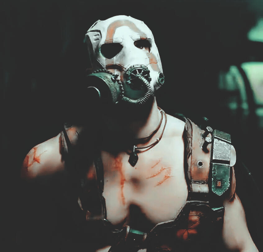 Andrei doesn’t remember much of what the world was like before, there wasn’t much to remember. He was an orphan, born to unknown parents and ran away from those who adopted him at a young age. He could only handle mistreatment for so long and even as a child that limit wasn’t very big. It was how he truly grew up alone, on the streets of Romania just trying to survive. One could say that’s what set him down the path he found himself on now. It was also what made him vulnerable, able to be taken off the streets by greedy corporations who knew what was coming and wanted to take advantage of the situation. No one would miss him, no one would know he was gone, taken down into one of the many vaults owned by the very corporation who had taken him. They wanted to research things, reactions, thoughts, all of it as the world above slowly devolved into shit. Nuclear war came, to no one’s entire surprise and the people went underground who could afford that safety. Others were doomed above to adapt and survive. Down below, however, Andrei didn’t have a choice and he wouldn’t call it protection. He was poked, prodded, feeling like he was being torn apart and put back together again to see what made him tick. They wanted to see what he could and would do to survive in various situations, how to make him better, all just for the fun of it. At least that was what he thought, what it felt like the longer he stayed locked in their vaults and experiments. Andrei lost track of how many he’d killed, what he’d done, anything to survive to get to the next day. Scars scattered over his body showed hints here and there, some better cleaned up than others, some more noticeable, but he knew them all.And just like with his adoptive family, he eventually reached a breaking point. It was hearing how much time had passed that made him finally snap. Ten years. For ten years he’s been trapped, experimented on, and killed to survive. He was irrevocably changed but it was what was going to get him out. An opportunity seized, the now large Romanian wasn’t the young pre-teen taken off the streets anymore and so he broke free. No one was safe in his wake, a bloody trail of broken and dead bodies scattered the halls of the vault until he finally found his way out. The blinding light of the sun took some getting used to, being outside again took adjustments as he learned the new landscape and the new environment. Nothing was exactly the same, at first needing to blend in so he picked up a mask and clothes off of a bandit he’d killed and moved on. Anything he could do to avoid being caught again, avoid being seen so openly. The mask gives him the ability to protect his face from the harsh environment but also his identity to others. No one would be able to connect who he was with it on, moving about the multi-corporate run Earth to survive. Nothing done to gain too much attention, finding his main weapons through it all to be his buzz ax ( ax with a buzz saw as its head ) and machete as he wandered from place to place. Cities were partially safe, too busy with other things to focus on the escaped experiment and murderer who seemed to go missing. There are wanted posters with his face on them, a reminder when he passes by on why he keeps his mask onHe trusts no one, easily kills to survive, and mostly remains silent. Andrei is a man of few words, speaking when he feels he should to avoid even his voice being something that could be recognized. Despite the mask he wears, one can tell through his body language and the one eye showing how he can feel towards them. He doesn’t hide it, his glare more often the one seen than anything else along with how his body is tensed and ready to fight or defend at any given moment. He was practically raised and morphed into a killing machine, people are just lucky he has control enough to not break like so many others he’d seen down in the vaults.
